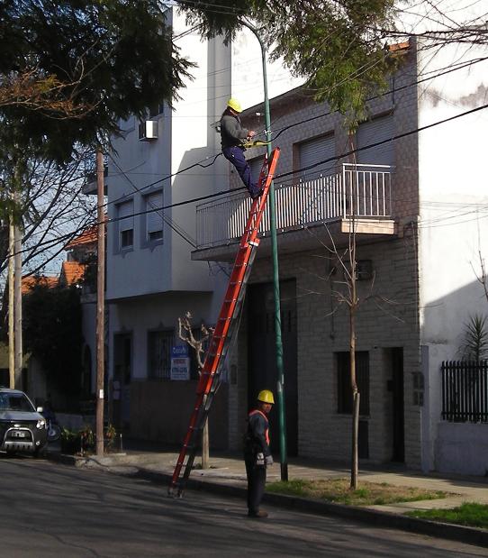 Operarios terciarizados de Canal 26 cuelgan su cable del poste de Luz…