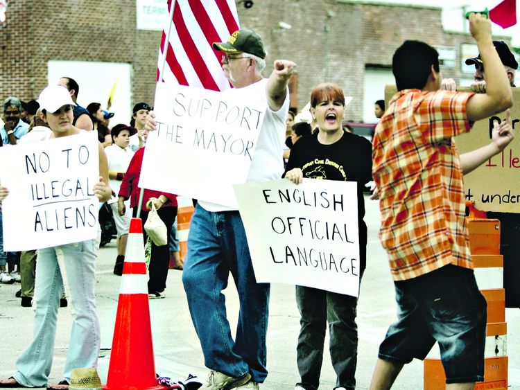 La foto en este artículo parece obvia: un grupo de «american citizens» protestando a favor de la ley y en contra de quienes la violan.
