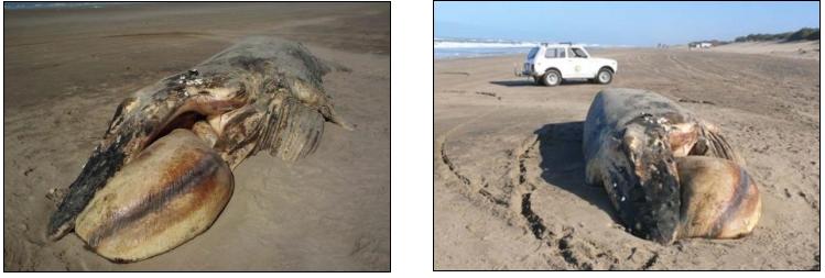 Se trata del hallazgo de los restos de una ballena jorobada y una tortuga gigante de la especie «laud» consideradas de las más grande del mundo. Se ignoran las causas de los decesos.