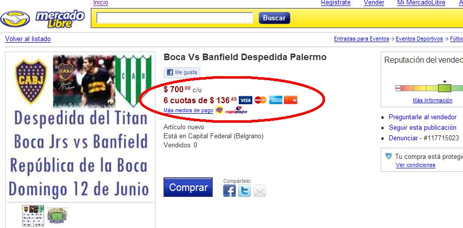 Cuántas veces escuchamos decir que en Boca no se vendían entradas porque había tantos socios que ya la bombonera quedaba chica? No será obviamente la despedida de Palermo una ocasión convocante? Sin embargo en Mercado Libre ya estalló la reventa…