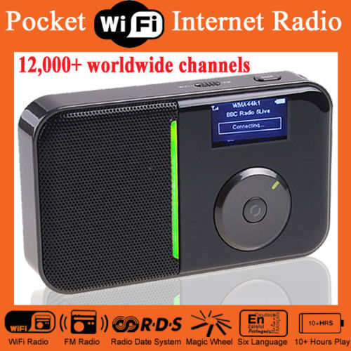 Radio «Wi Fi» dice en Ebay… «Reciba más de 12,000 radios mundiales» dice el artículo que propone un artefacto que -a simple vista- es una radio pero, si bien se mira, no recibe por ondas Hertzianas, sino por internet inalábrico.