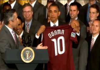 Fue en la Casa Blanca que recibió a los ganadores de la (MLS) 2010 Major League Soccer, Obama luego de felicitar a los campeones, le proporcionaron como regalo una camiseta conmemorativa, con su nombre y el número ’10’.