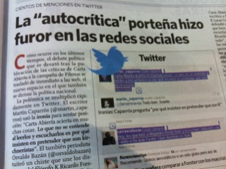 Ante la irrupción del Twitter algunos diarios como «Clarín» por ejemplo, han comprendido que un nuevo rol sería ya no fijar sino «meterse» en la conversación.