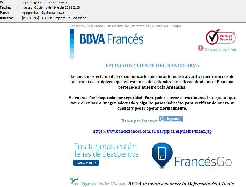 En mi caso yo opero con el Banco Francés, y si bien es cierto que no me mandan demasiada correspondencia por e-mail, tampoco es extraño encontrar un mensaje de ellos.