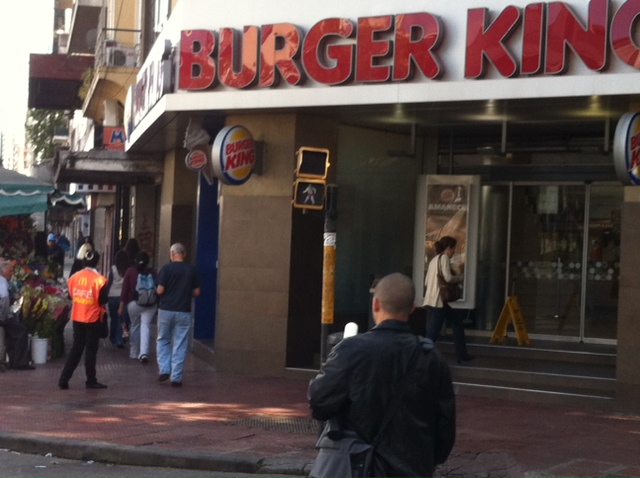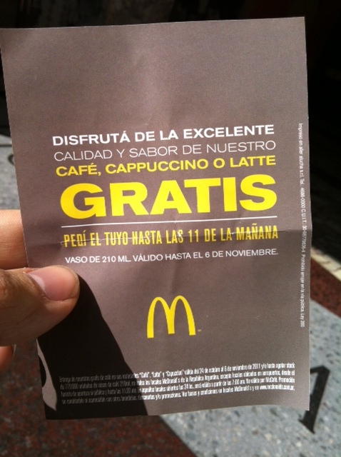 Al pasar por la puerta del Burguer de Olazabal Y Cabildo una chica me regala un papelito que dice: «café gratis»