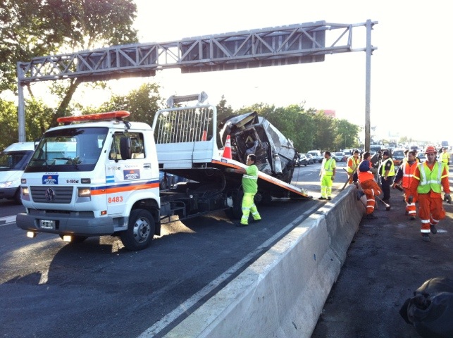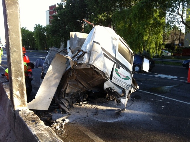 Retiran el camion chocado en la Panamericana alt Olivos