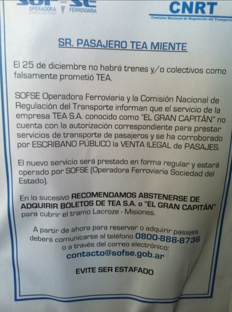 La Secretaría de Transporte finalmente cerró las boleterías de TEA: la empresa que mal gestinaba el tren conocido como «El Gran Capitán»