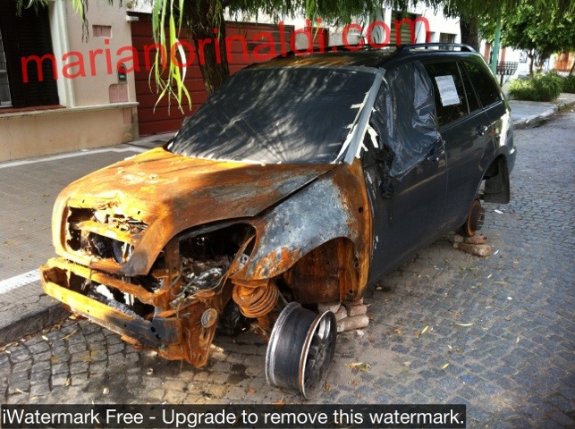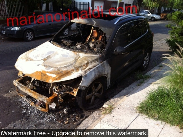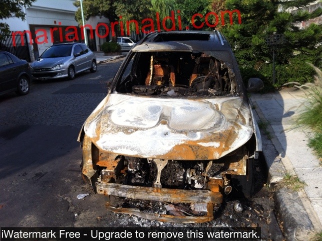 Nazarre al 3600 camioneta hyunday quemada a las 14hs en el jardín del frente de la casa