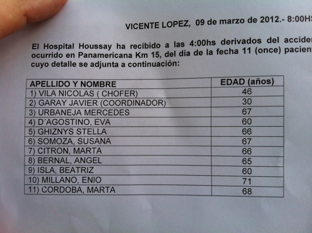 Lista de heridos en Panamericana