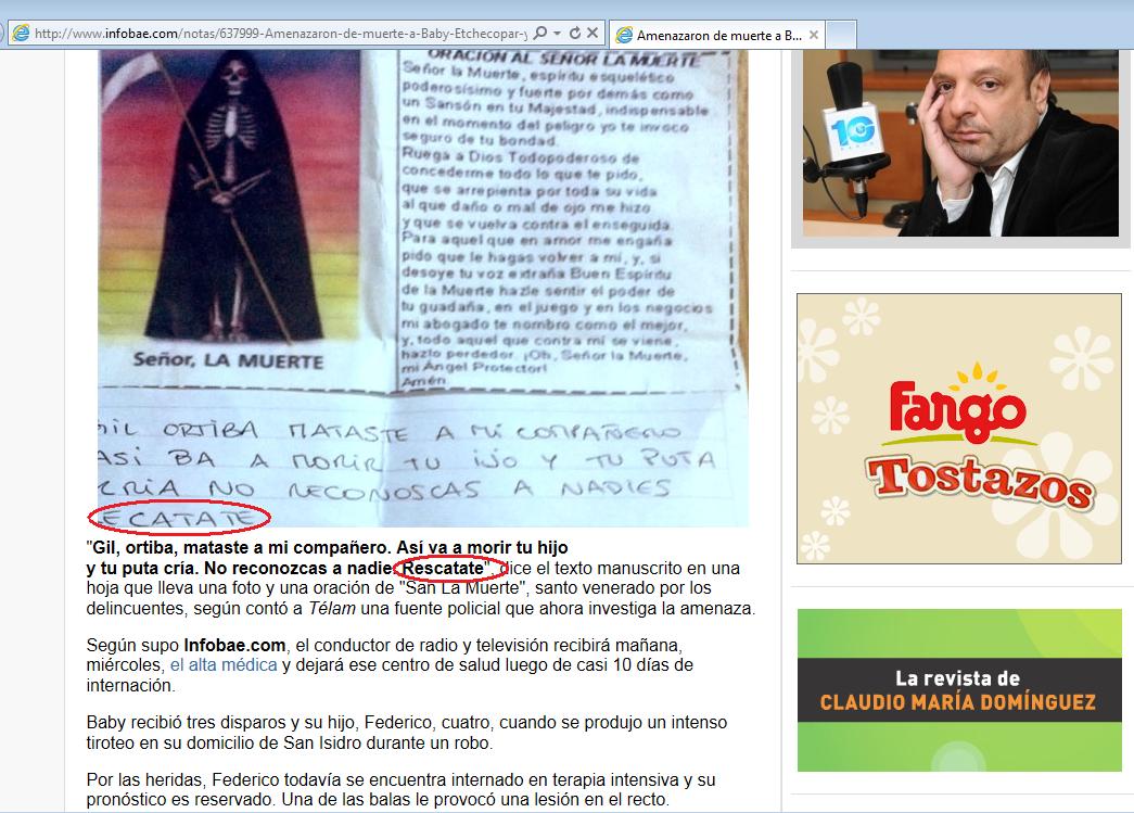 A mi me había sorprendido la supuesta aparición de una amenaza contra Baby Etchecopar en el Hospital de San isidro.