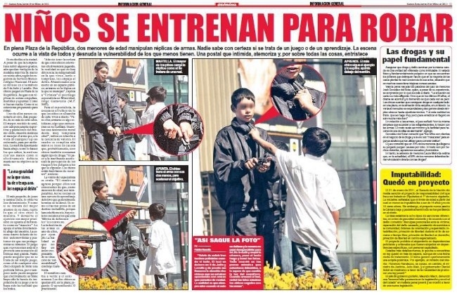 La nota muestra pibes armados: según crónica no están jugando sino «entrenando para robar»
