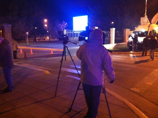 Hacia las 6 llegó la Caravana que se vió salir del Sector Militar de Aeroparque: van gris, ambulancia y auto de apoyo