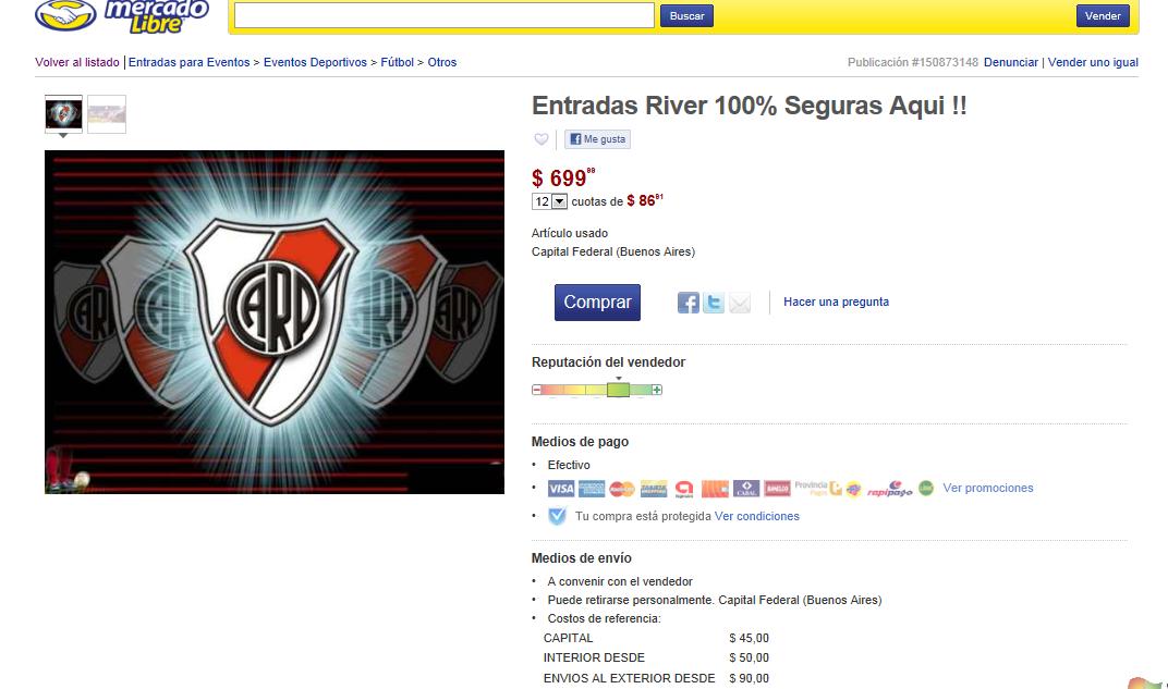 ESTOS MAFIOSOS VENDEN ENTRADAS POR MERCADO LIBRE CAGÁNDOSE DE RISA DE LA GENTE Y DEMOSTRANDO QUE FISCALES, POLICIAS, INEVSTIGADORES, ETC SON UNA GRAN MENTIRA!!!