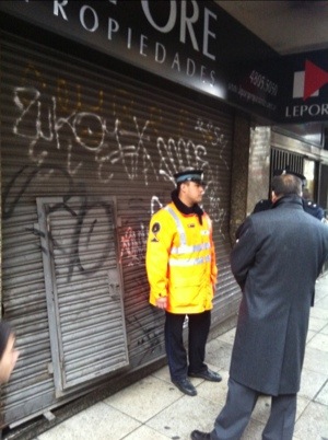 Mientras hacíamos la nota aparecieron dos hechos más: intentaron reventar la cortina para robar en Lepore propiedades… En plena av Las Heras