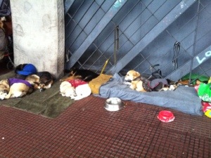 Él vive en la calle, pero a sus perros no les falta techo (la recoba de Paseo Colón) ni abrigo. Como podrán observar cada perrito tiene su tapado