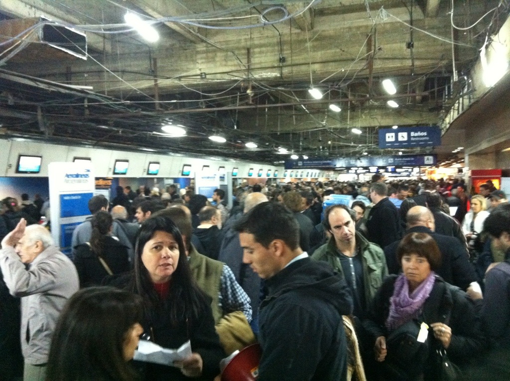 25 vuelos de austral y Aerolíneas cancrlados: el resto con «importantes demoras» según se anuncia por los altoparlantes