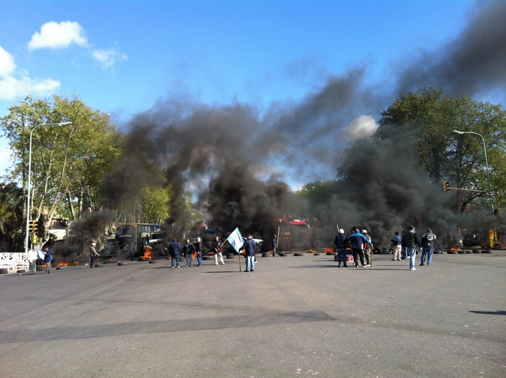 Son jubilados portuarios que cortan totalmente la calle Castillo alt Antártida Argentina