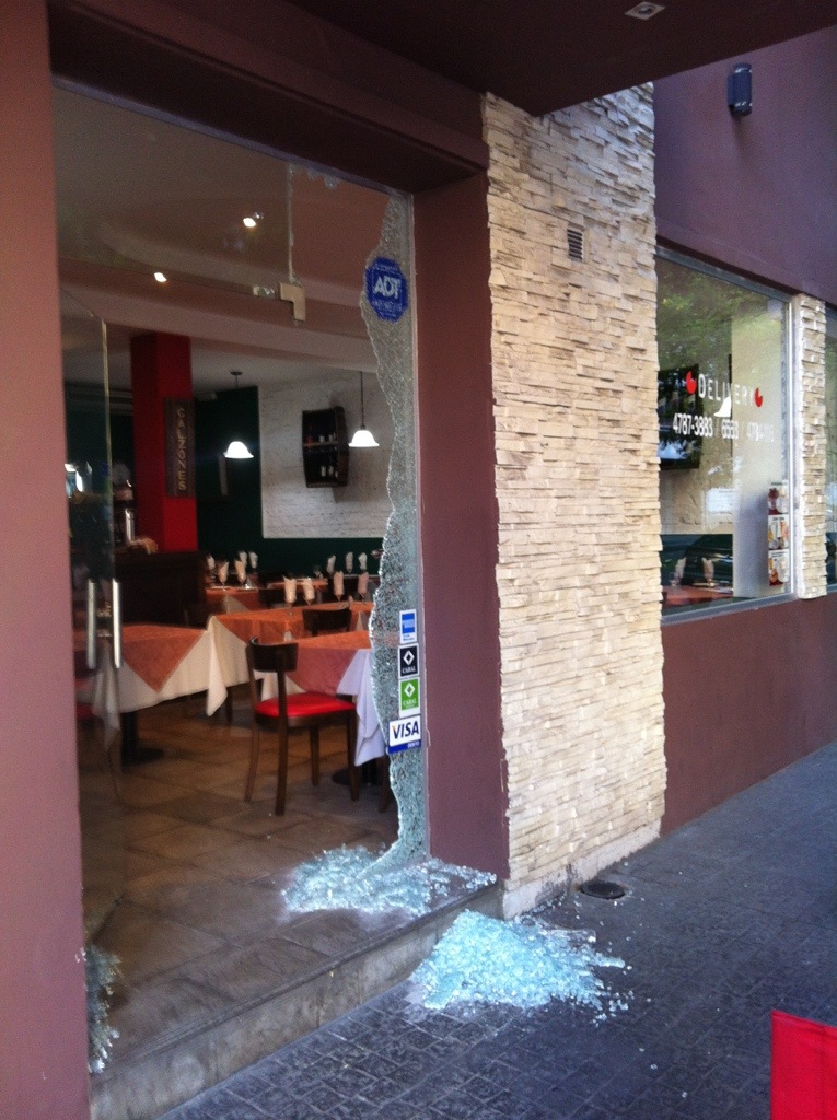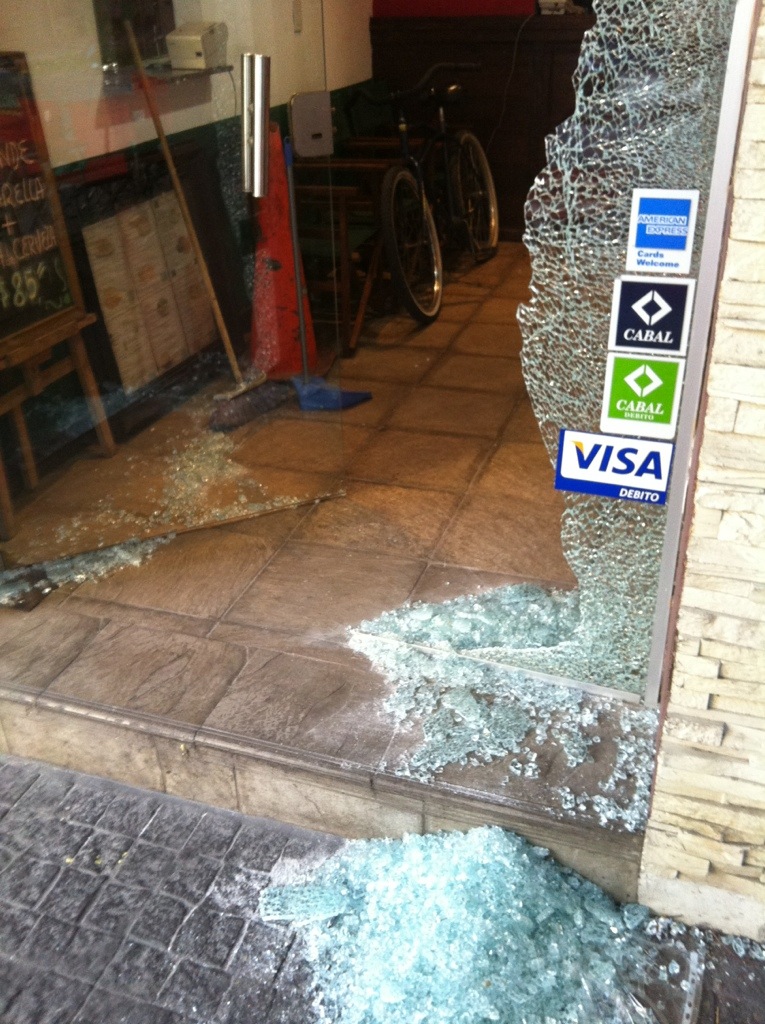 Rompieron el blindex para llevarse un LED y algo de plata que habia en la caja