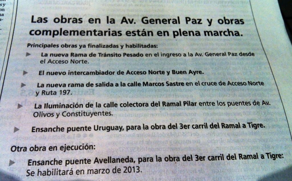 En ella y pese al titulo: «Las obras en la V General Paz y obras complementarias están en plena marcha»