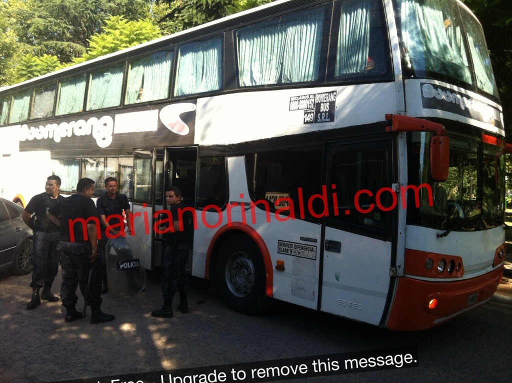 Al ver la cámara los barras de Colón detenidos cierran las cortinas del micro