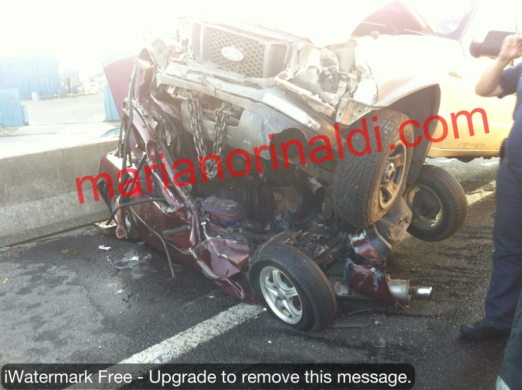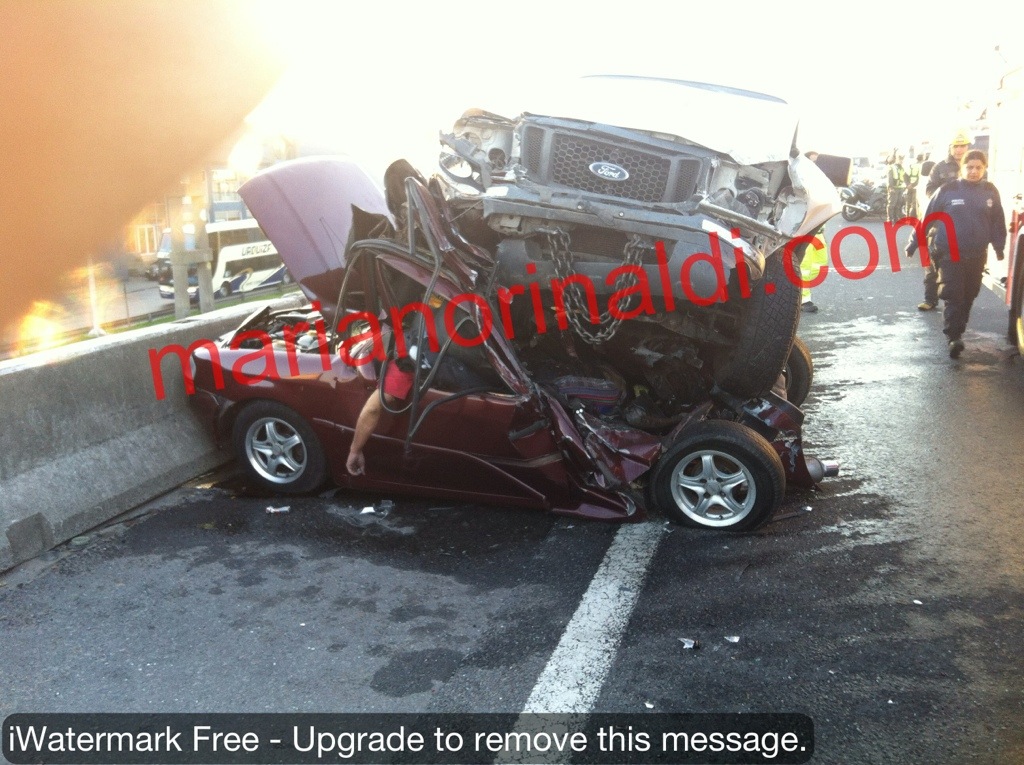 Lo que está debajo es un gol con 3 personas. Había parado en la banquina, pero la Ranger entró por la izquierda y se llevó puesto al auto matando a las 3 personas