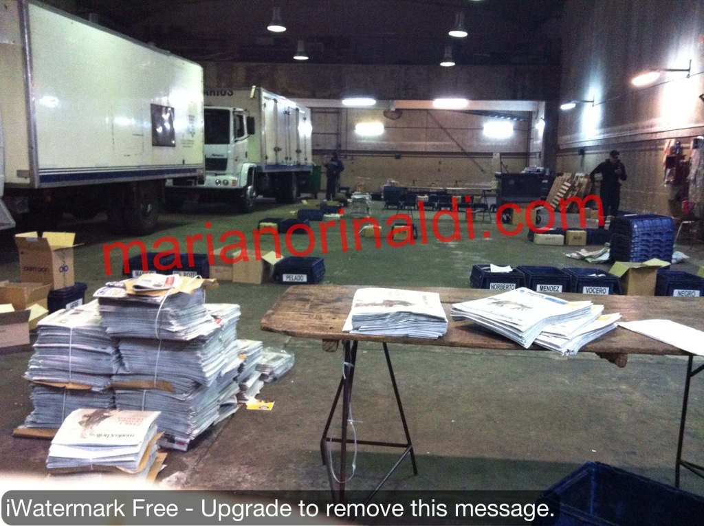 La Situación es así: hay conflicto gremial en las distribuidoras (camioneros). Anoche hubo «asamblea» de 23 a 5 x lo q los camiones no salieron y son los propios canillitas que deben venir a las distribuidoras a buscar diarios y revistas (algunos kioscos ya tienen) El conflicto no se resolvió y de no mediar el ministerio de trabajo podemos quedarnos sin distribución todo el finde largo.