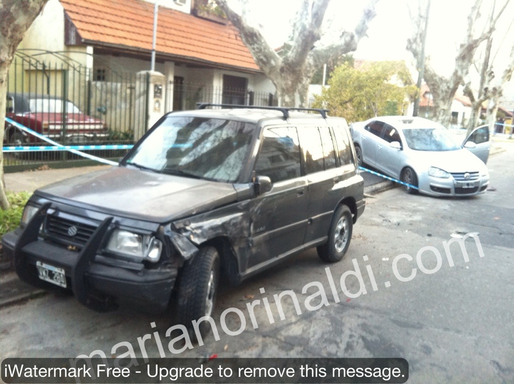 Al tirotearse con la policía, los delincuentes terminan impactando contra esta Vitara de un vecino