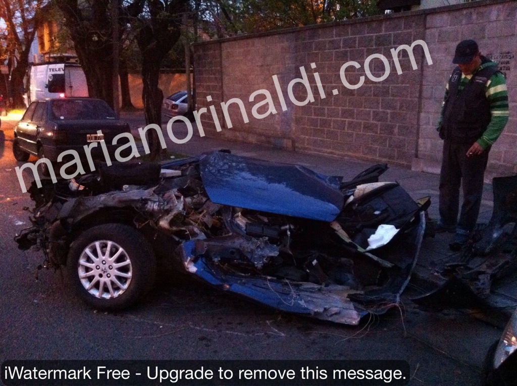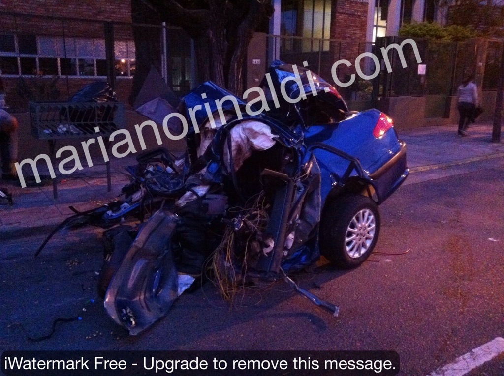 Así quedó este peugeot tras impactar a alta velocidad contra un árbol en Panamericana y San Martín. Sus 4 ocupantes murieron en el acto