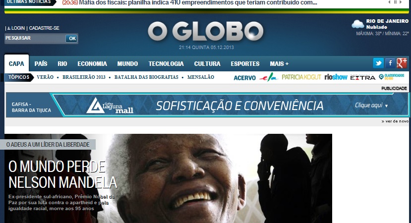 «Muere Mandela, padre de la lucha anti-apartheid. El mundo llora a un hombre libre»