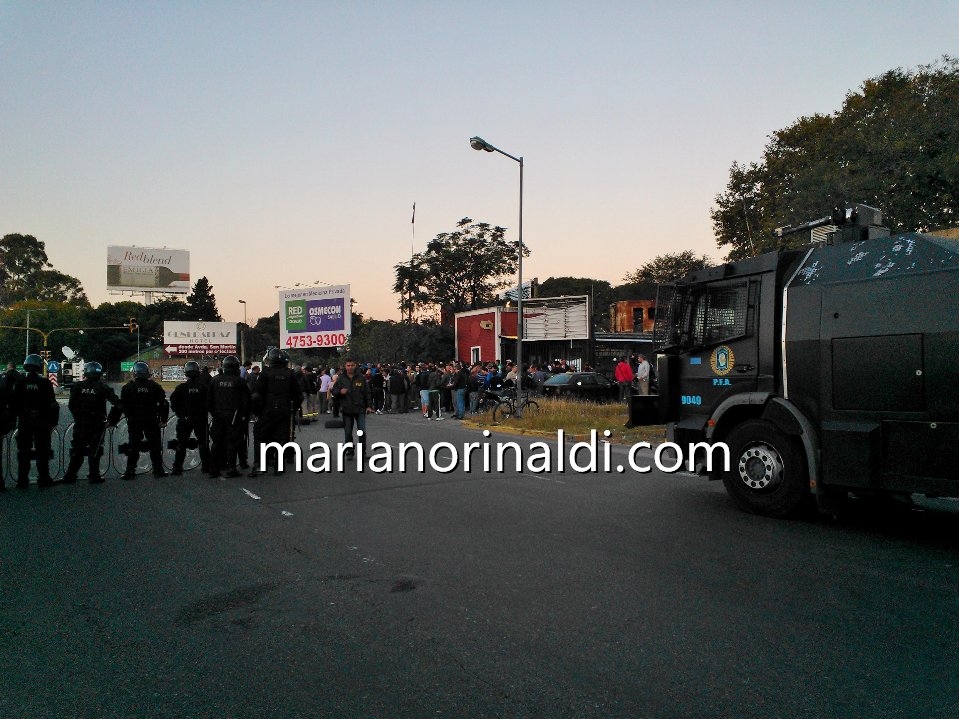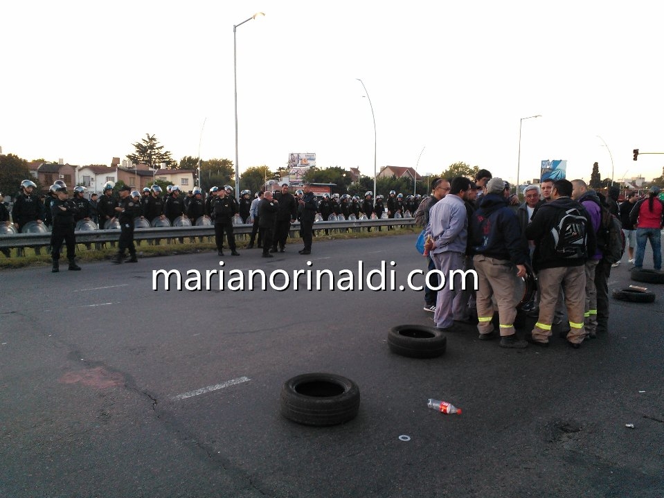 Se trata de trabajadores de la ex EMFER TATSA de los Cirigliano. Realizan una asamblea al borde de la General Paz con posibilidad de Cortar: hay mucha presencia de infanteria policial