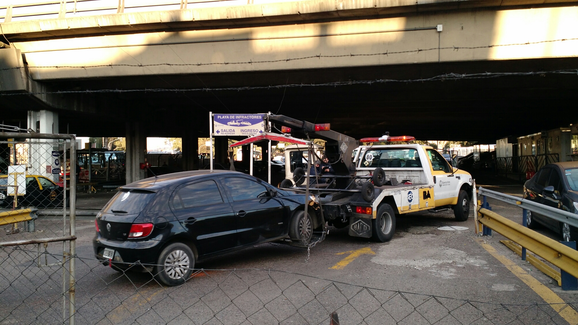Según los responsables de las gúas, tanto al momento de ser levantado, como cuando fue dejado en el playón de estacionamiento, la luz no era buena.