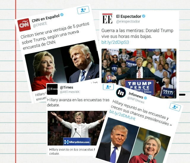 Es decir que en lugar de publicar: «Me parece impresentable Trump con su quincho, qué horror si gana las elecciones» apelaremos a este recurso estadístico para decir «Se complica la situación del candidato republicano mientras Hillary no para de subir». Y este exceso de voluntarismo fundamentado en qué? En las encuestas, claro!