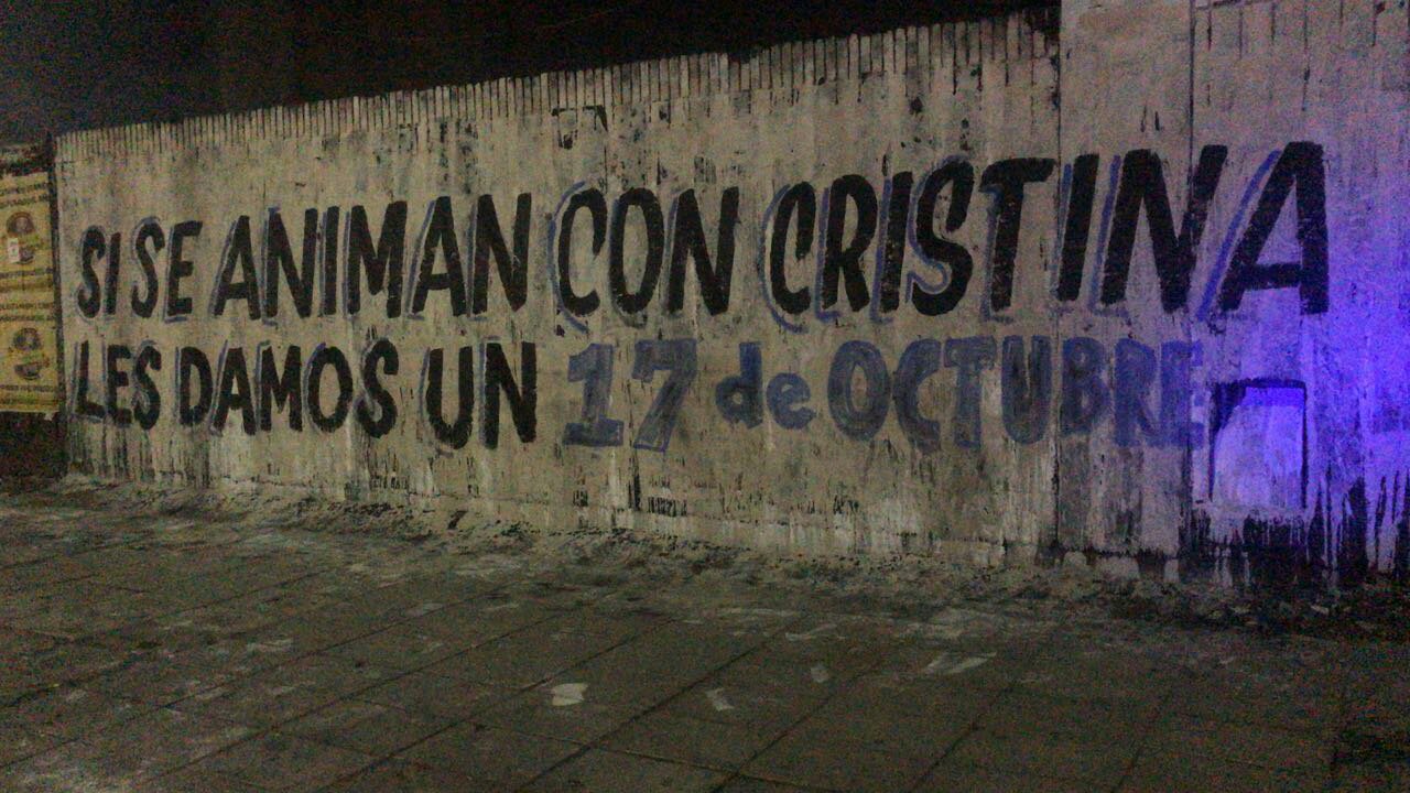 «Si se animan con Cristina les damos un 17 de octubre». Esta pintada fue hecha en la madrugada frente a la quinta presidencial de Olivos: se trata de una consigna política o es simplemente un amenaza?