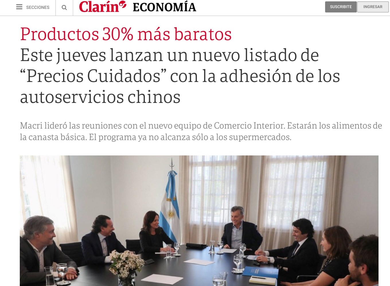 En tiempos de reducción de ministerios, el presidente Macri desdobla la Secretaría de Comercio en «Exterior» e «Interior» otorgándole a la última la tarea de negociar un programa de «precios cuidados» con la esperanza de reducir un 30% algunos artículos sensibles en la canasta básica.