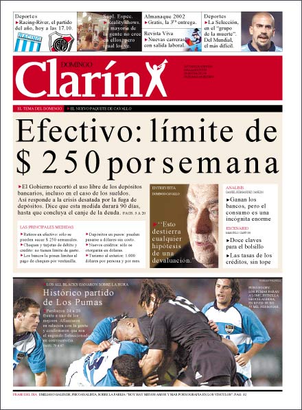 Fue para los días finales de noviembre, cuando el descontento social empezaba a volverse incontrolable y la corrida en los bancos amenazaba con arrasar al sistema financiero. Fue cuando “el paladín” de la democracia jugó una de sus últimas cartas.