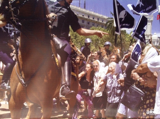 Entonces, como si se tratara de una carga de caballería de los granaderos de San Martín enfrentando a las huestes realistas, jinetes de la Federal cargaron contra las madres con bastones y lanza gases y rompieron la columna.