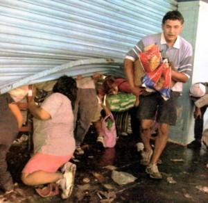 A las 2 de la tarde una tromba de gente había arrancado las persianas metálicas de su negocio y -en menos de una hora- se habían llevado todo, hasta el arbolito de navidad que estaba junto a la caja.