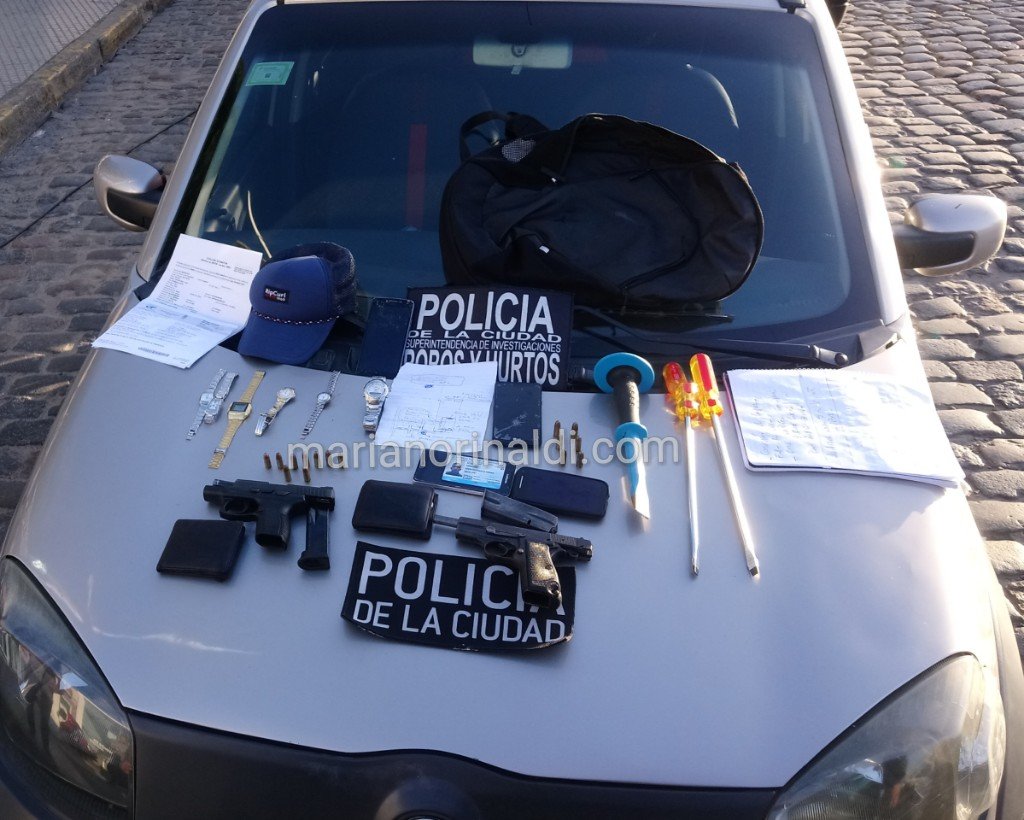 Venían de robar a un automovilista en Flores. Cinco detenidos con antecedentes que cayeron armados y con el producto de robos anteriores.
