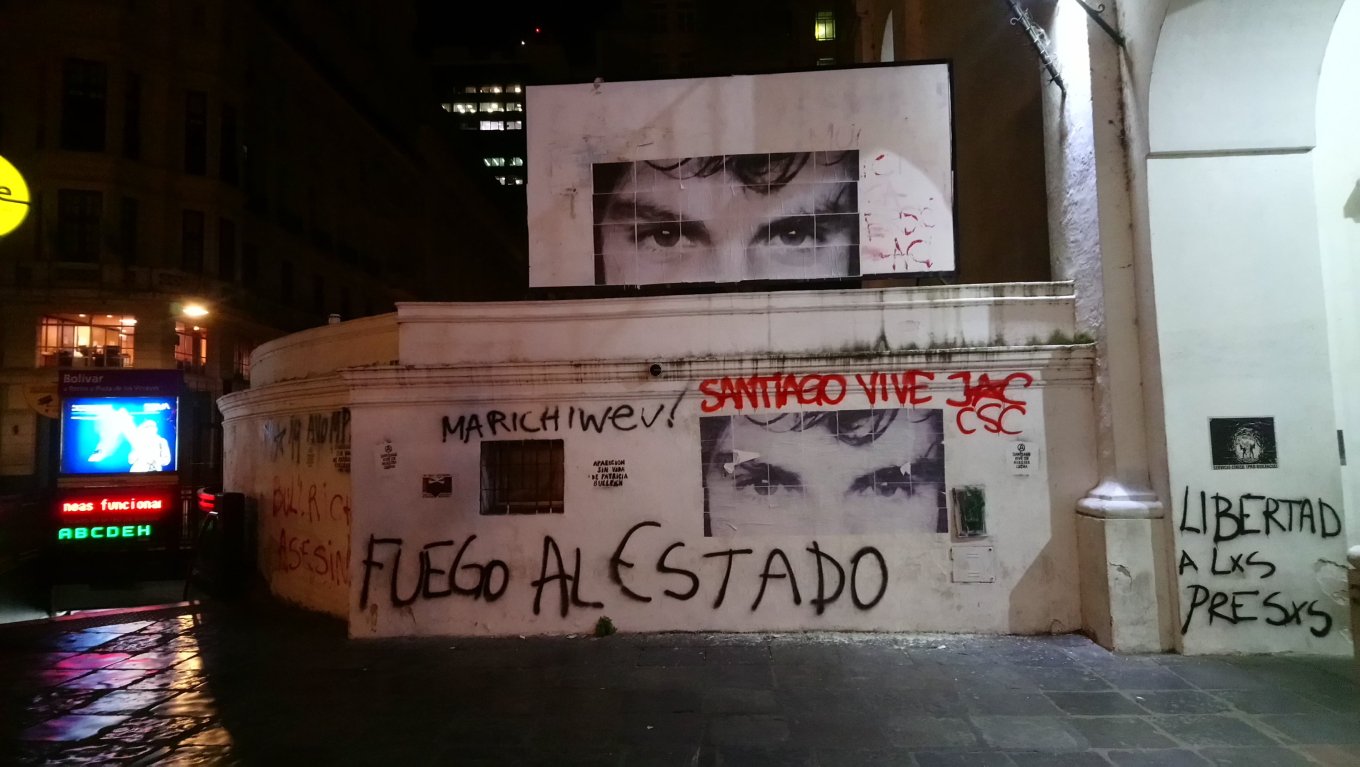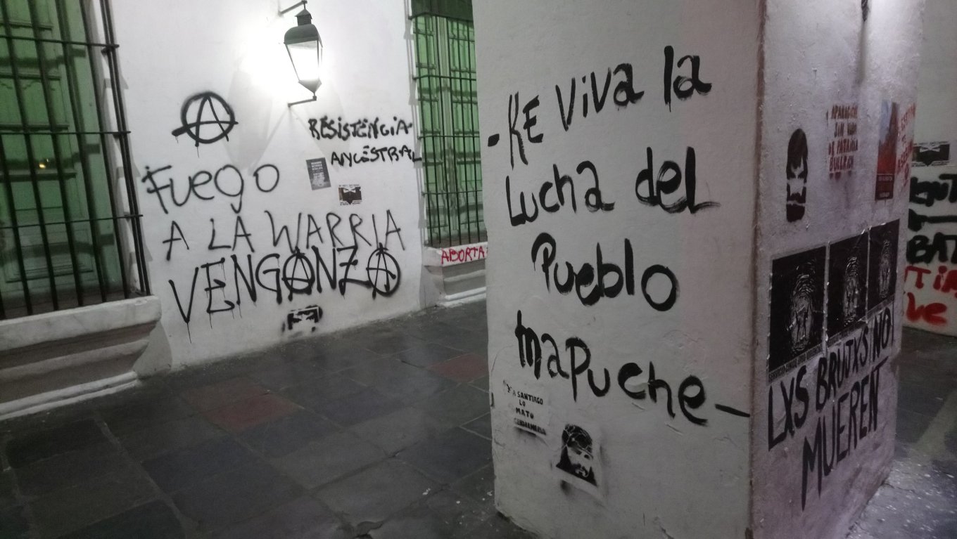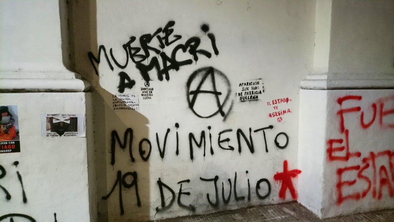 Fue durante la marcha por los dos años de la muerte de Santiago Maldonado. aparecieron amenazas de muerte al presidente ya la ministra Bullrich y consignas contra el estado y la democracia.