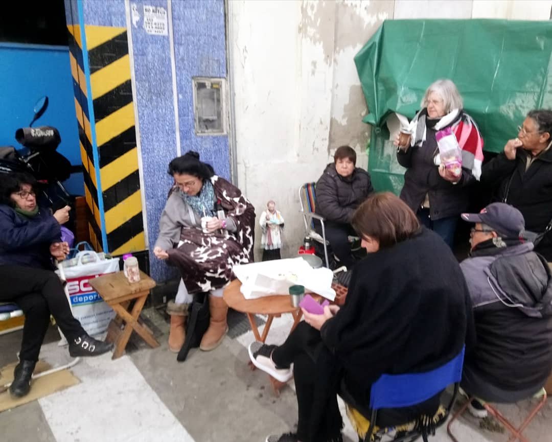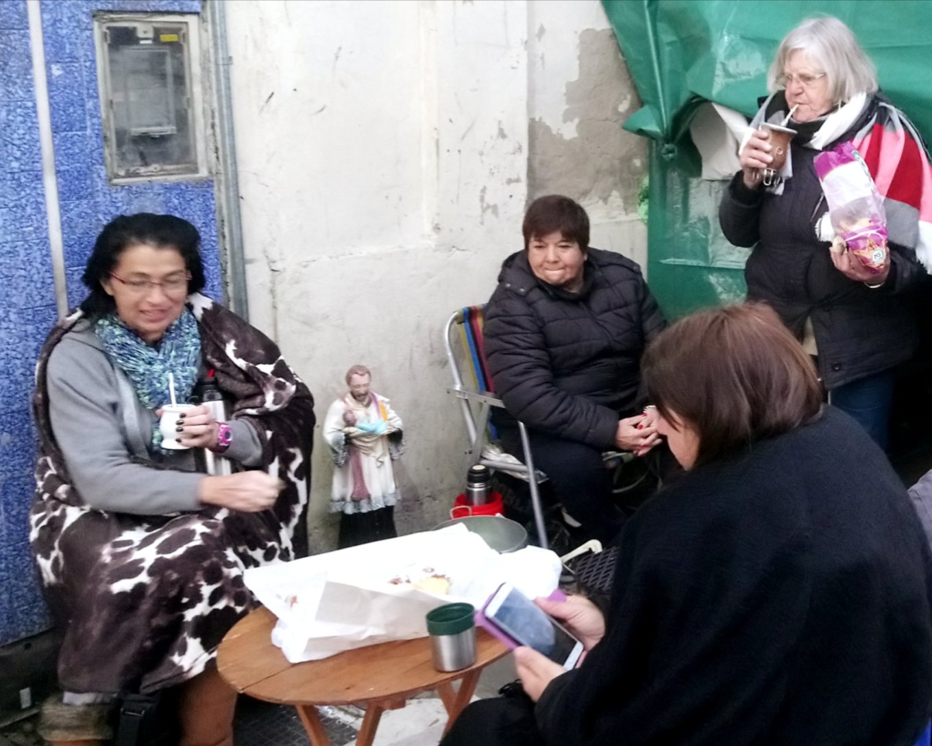 Para combatir el frío se comparten mates y novenas.
