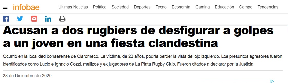 Pasaron solo tres semanas de la «renovación» anterior: aquella vez se había tratado de la agresión a Lautaro Insúa, un joven de 18 años al que literalmente “le rompieron la cara” en un barrio cerrado de Córdoba donde los deportistas pretendían entrar a una fiesta privada a la que no habían sido invitados.