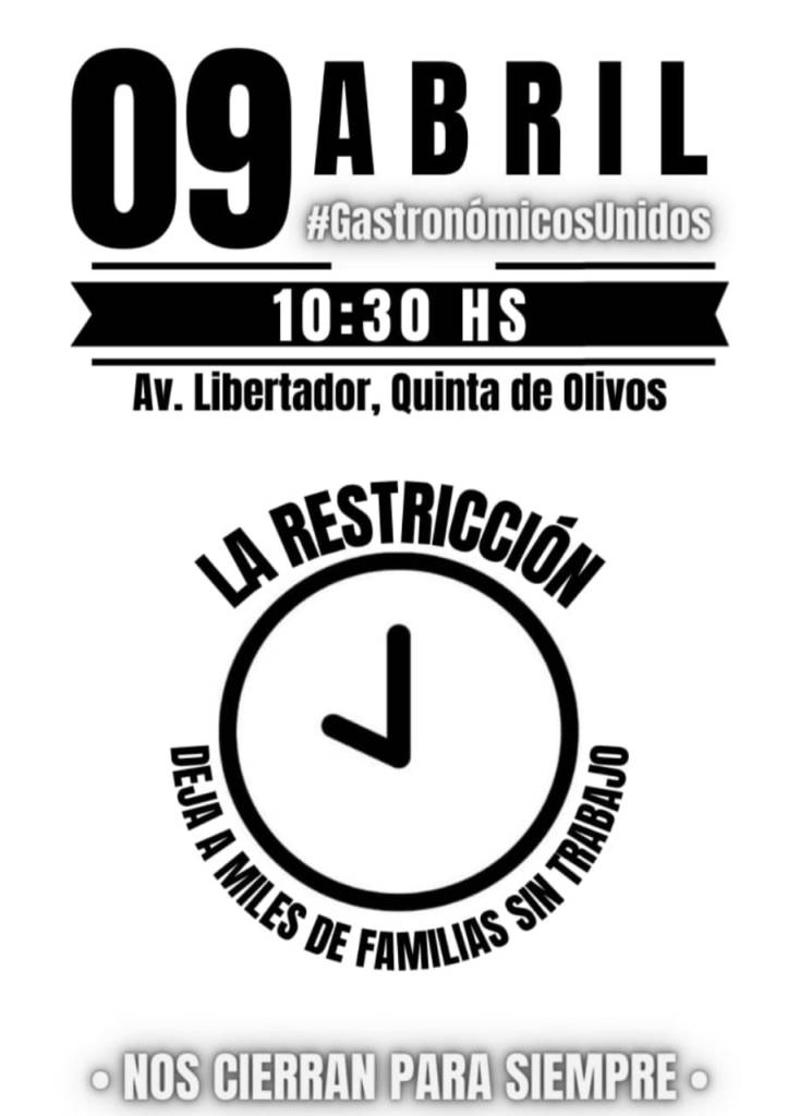 Con la consigna «los bares no contagian» y con el objetivo de preservar las fuentes de trabajo y sus empresas, propietarios de bares y restaurantes comenzaron una serie de protestas: ayer se juntaron en General Paz y Alberdi y hoy van a concentrarse frente a la quinta de Olivos para reclamar ante el gobierno.