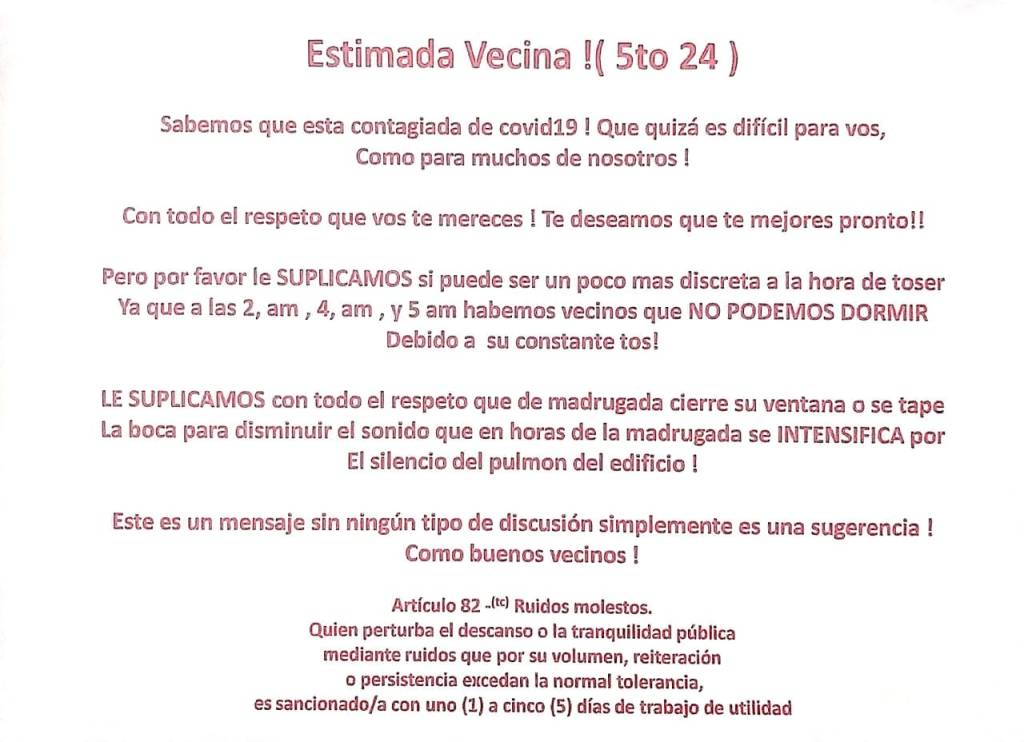Cuando publicamos esta carta que Alejandra recibió en su departamento a la que llamamos «consorcio los Hijos de Puta» y que rápidamente se viralizó en redes, muchos nos dijeron «No puede ser cierto», «es una joda». Hasta no faltó quien nos mandara a chequear la información. El punto es que ya estaba chequeada: la damnificada existe, es de riesgo por ser diabética y la carta es real. Se llama Alejandra González y este es su lado de la historia. Escuchala!