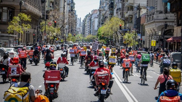 Repartidores de aplicaciones se declararon como «trabajadores precarizados» y reclamaron ser reconocidos en la relación laboral que mantienen con las empresas de delivery que operan vía aplicaciones. Además formaron un sindicato con el que esperan ser reconocidos por el Ministerio de Trabajo.