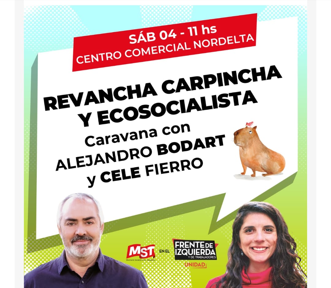 Para defender a los carpinchos en su intento de regreso a su hábitat de origen, el Frente de Izquierda realizará este sábado una caravana por Nordelta. El propósito es además visibilizar una serie de situaciones en las que la codicia económica está atentando contra nuestro medio ambiente. Al respecto hablamos con Alejandro Bodart del MST