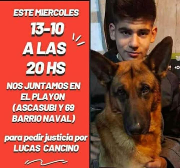 Se llamaba Lucas Cancino, tenía 17 años y se dirigía a la escuela cuando esto sucedió, a las 8 en Combate naval de Quilmes entre Lugones y Ascasubi. Herido fatalmente pudo regresar a la casa de sus abuelos para pedir ayuda, en donde se desplomó. La indignación de los vecinos se acrecentó cuando el secretario de Seguridad, Sergio Berni dijo que los presuntos autores estaban detenidos y uno de ellos había sido detenido hace dos meses por un robo a mano armada, hecho por el cual solo estuvo preso 4 días.