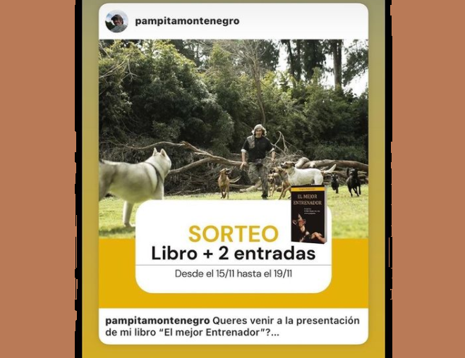 Finalmente llega el momento de la presentación del libro «El mejor entrenador» de Jorge Pampita Montenegro, el ecnantador de perros argentino, «padre» de Betún de «Los Simuladores», Fatga de «Casado con hijos» y de Mati de «Patito Feo» entre otros. Participá por el libro y entradas para la presentación que contará con presencia de famosos que trabajaron con los perros de Pampita y sorteos escribiento al Instagram de Pampita Montenegro con nuestra etiqueta #LSQV
