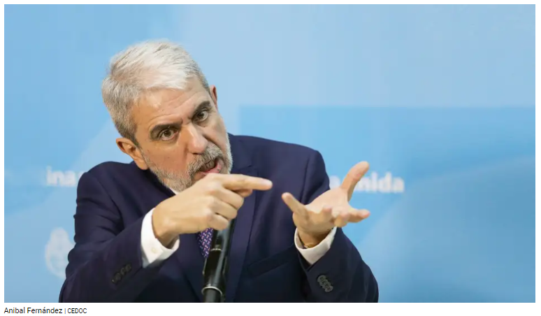 El ministro Aníbal Fernández fue de las pocas voces del gobierno que se escucharon en esta jornada de cambios: fue convocado a una reunión con el presidente lo que hizo dudar por algunos momentos de su continuidad en el cargo ya que buena parte de los funcionarios y ministros que se reunieron con Alberto Fernández este jueves terminaron cesando en sus funciones. Sin embargo este no fue el caso, para Aníbal Fernández «Massa aportará una visión más integral de la cosa»