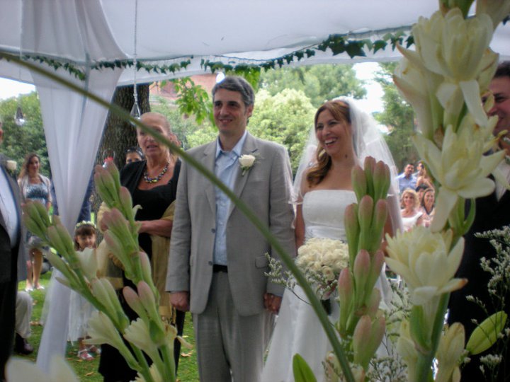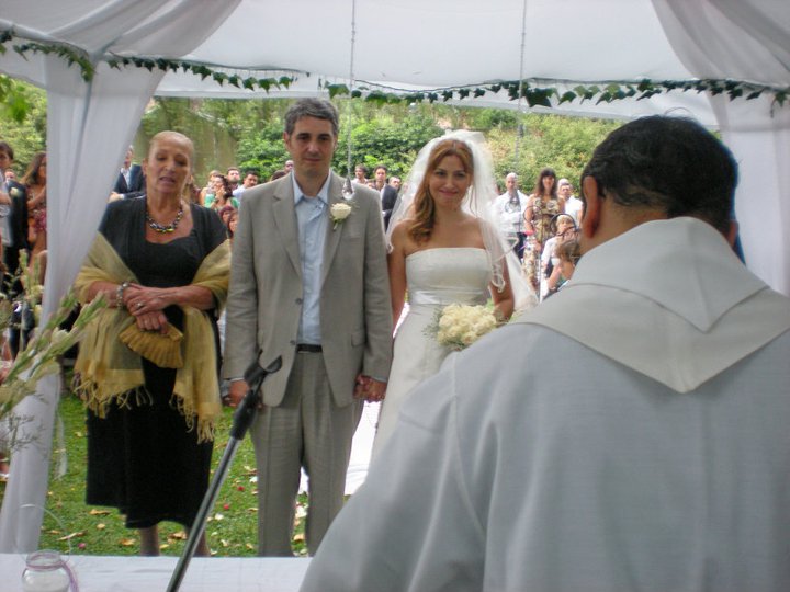 A las 12.30 ya la demora del clérigo empezó a ser preocupante y todos se preguntaban adónde estaba el cura. Guille, el hermano «gringo» de Andrea me dijo: «Si querés los caso yo y digo «Con el poder que me confiere el estado de Michigan… total nadie me conoce!»