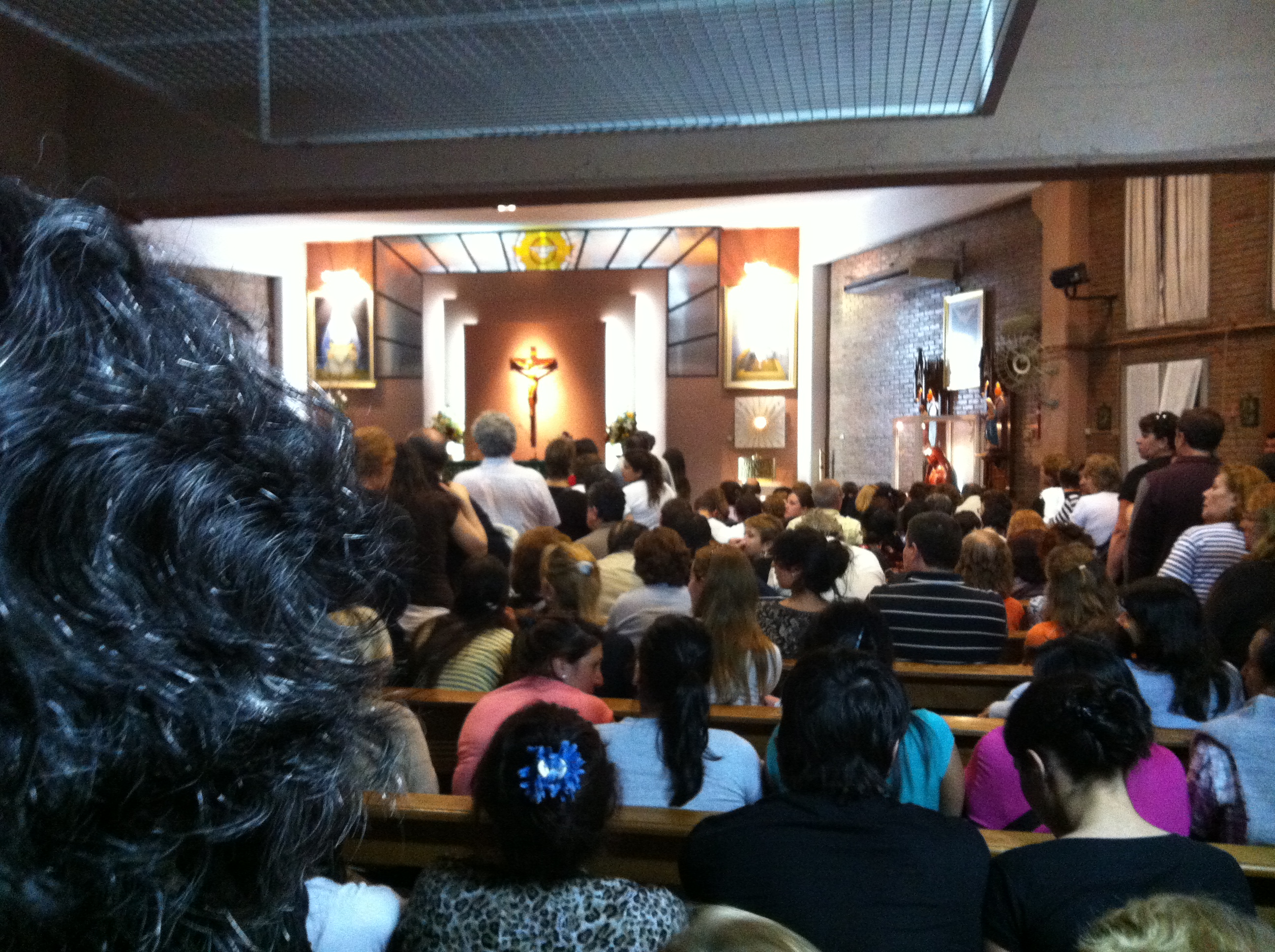 Cuando finalmente la ceremonia empezó, la gente era tanta que debimos escuchar la misa desde la calle. «Tranquilos» nos dijo un asistente; «el padre se queda hasta la hora que sea, pero atiende a todos».